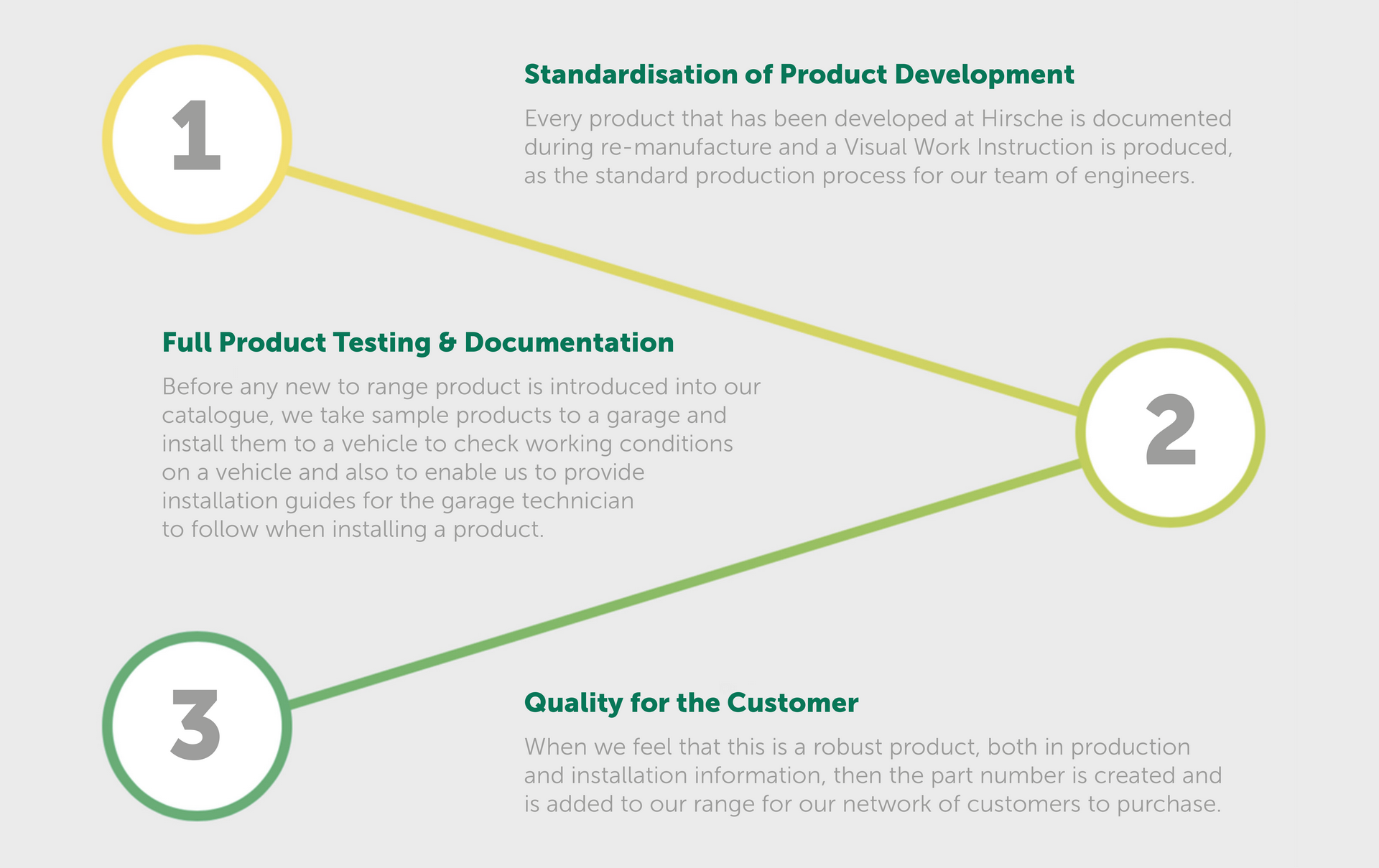 We have a 3 step plan to help us achieve our goal, to provide a product that is Re-manufactured to OE specifications and Plug and Play.